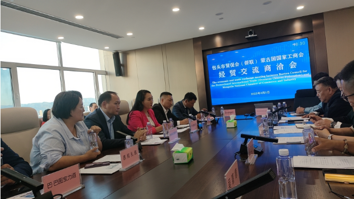 9月5日下午,包头轻工职业技术学院受包头市贸促会(侨联)邀请参加蒙古国国家工商会经贸交流商洽会。会议在呼和浩特举办,来自蒙古国不同地区工商会20多位代表和包头地区30余家企事业单位代表参会,推动中蒙能源矿产、水利开发、文化教育、财经商贸、服务贸易等协同发展,互惠共享。我院派出科技与对外合作处对外合作办主任李文策参加会议。